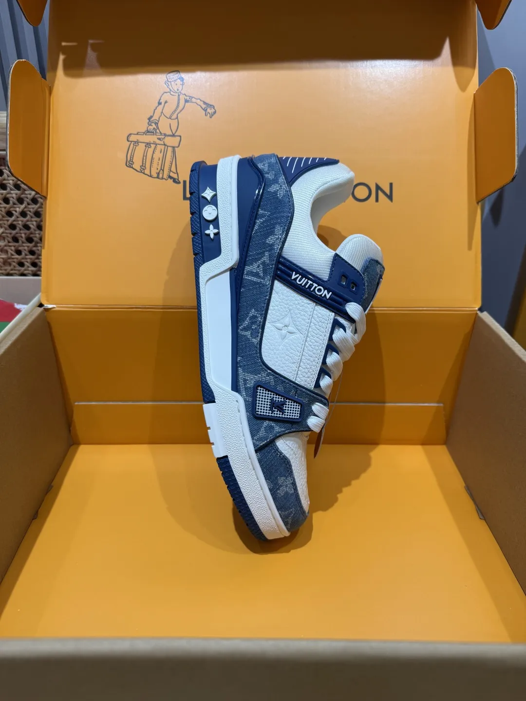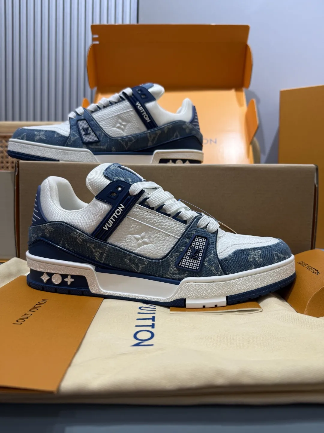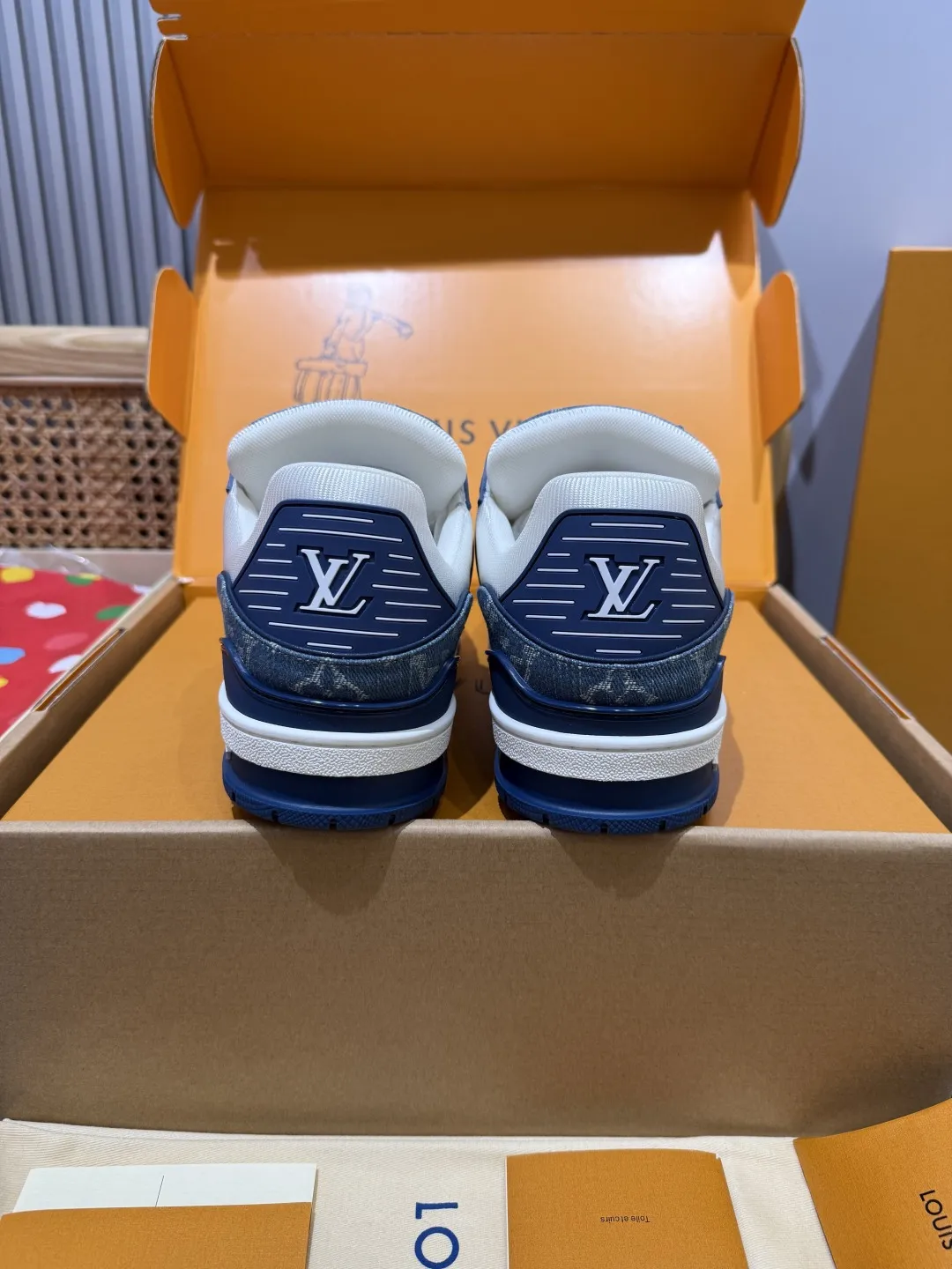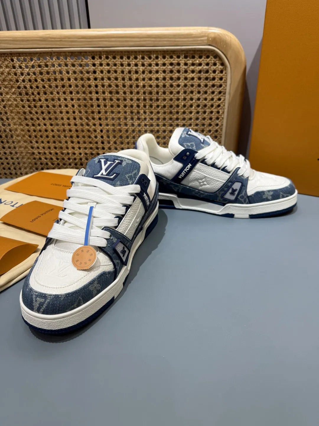 Step into style with these Louis Vuitton Trainer Denim Blue Casual Shoes, perfect for couples. Made from premium leather with custom-designed soles, they come in exclusive boutique packaging. Enjoy top-tier quality and unique design.